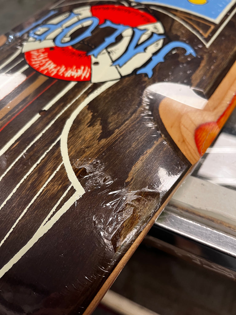 A full 9.2" wide for maximum truckage, with a squared off nose & tail for curb beat down durability & dual directional (fakie? switch?) creativity, as as the cherry on top that makes this board a true curb specialist, custom sanded hurrican rails *for increased lift in all angles and directions of rail to truck trickery.